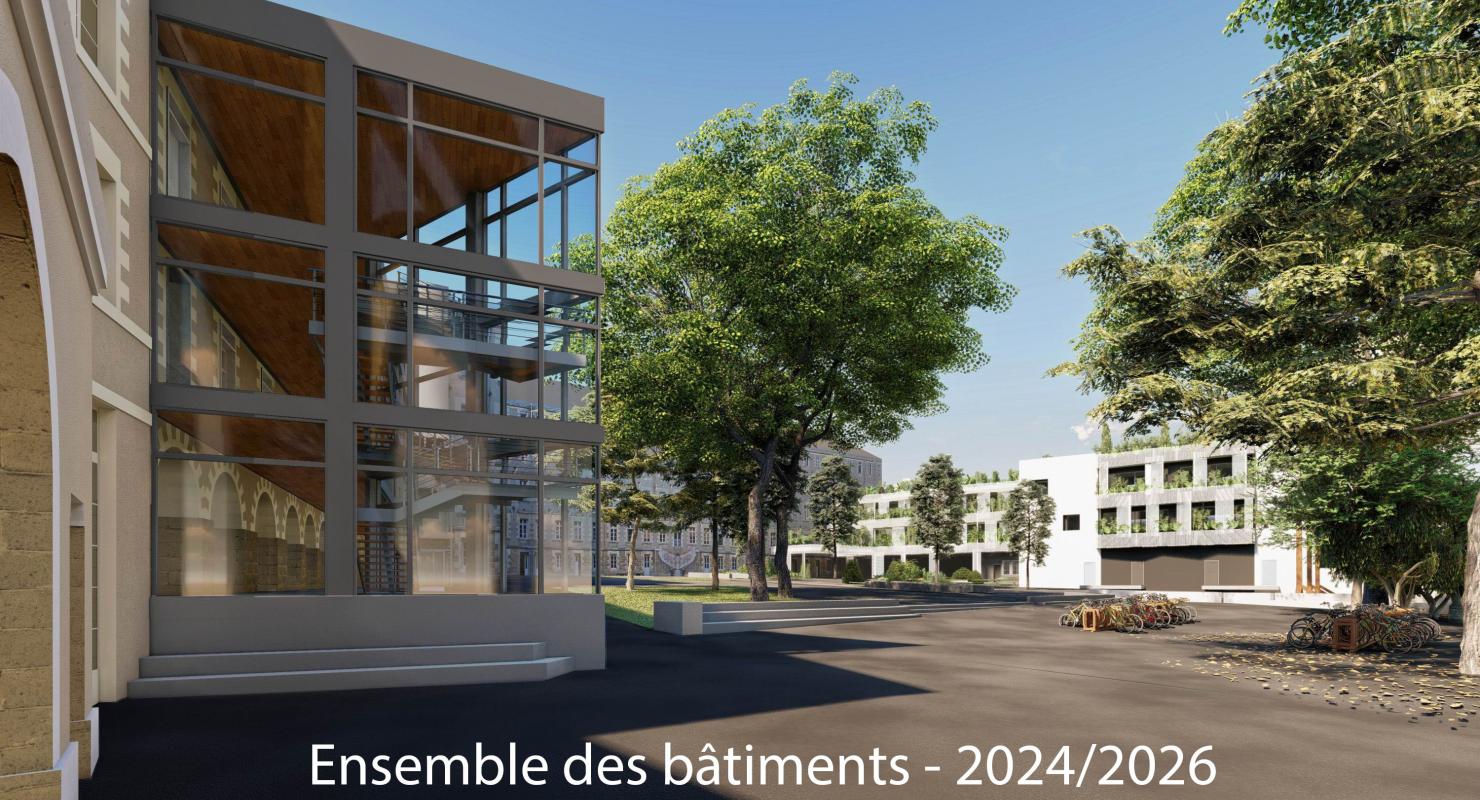 La cour principale subira des aménagements avec des gradins et des espaces verts supplémentaires.